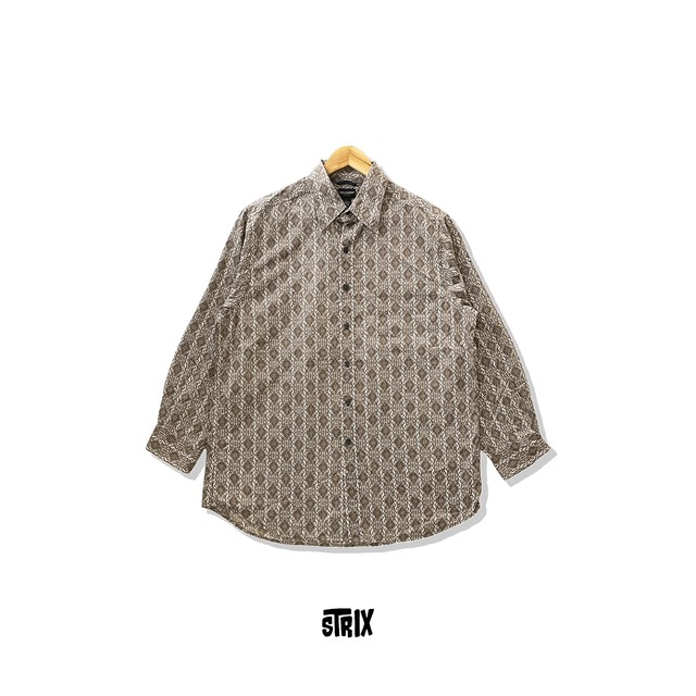 [ ITEM ] 【REUNION】総柄シャツ 長袖 [ SIZE ] サイズ:Lサイズ [ DETAIL ] 着丈 79cm 身幅 58cm 肩幅 46cm 袖丈 56.5cm 裾幅 60cm ※販売ページに表記のサイズは、平置きにした状態で採寸しております。 ※商品によっては若干の誤差が発生しますので予めご了承ください。 [ 状態ランク:S ] 状態ランクにつきましてはページ内の画像を参照ください。 カラー:ブラウン 素材:綿100% ※古着は洗濯、検品などのケアを行っております。 (新品・デッドストックは洗濯していません。) ※モニターの発色により実物と異なる場合がございます。予めご了承ください。