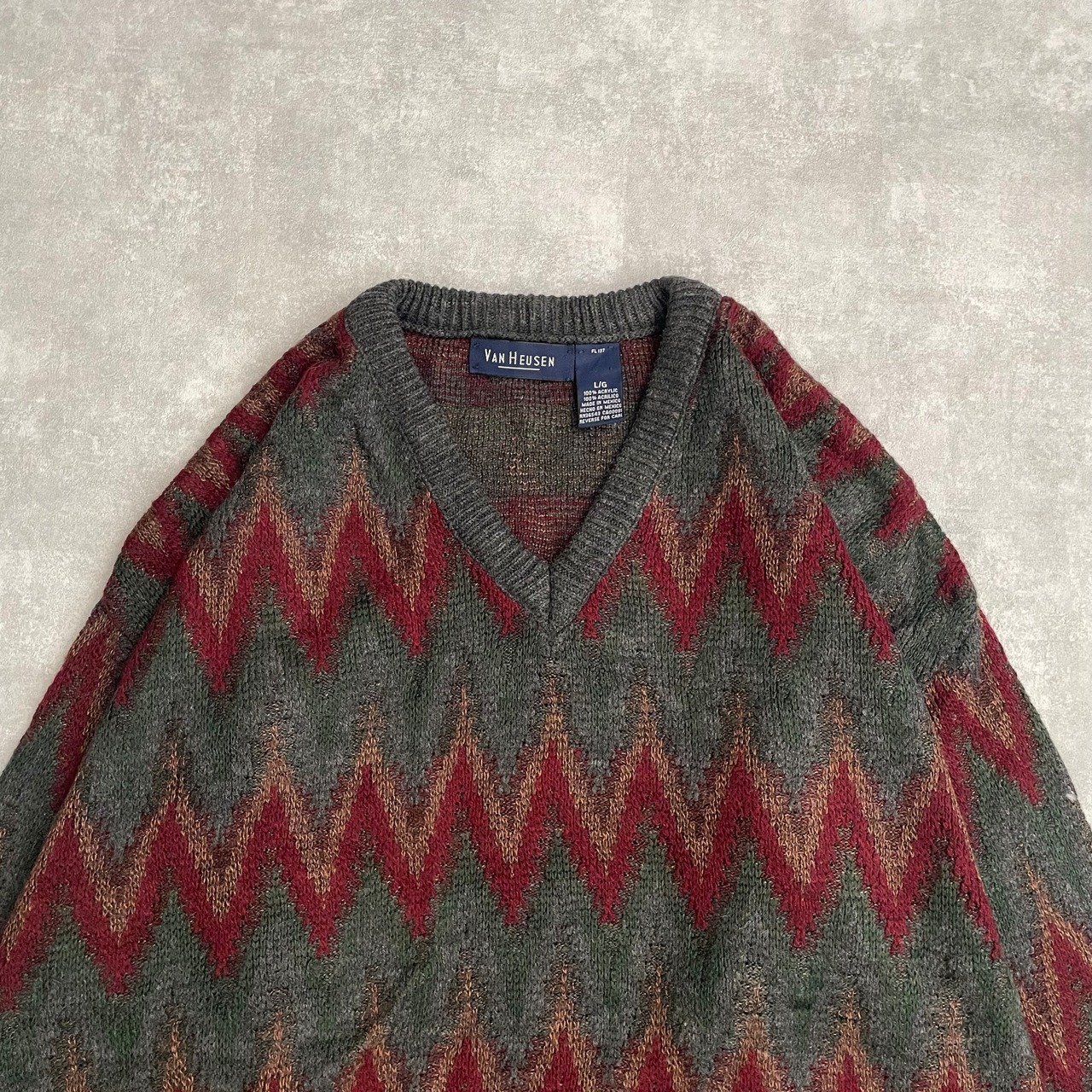 【VAN HEUSEN】 90s Vネックアクリルセーター ヴァンヒューセン