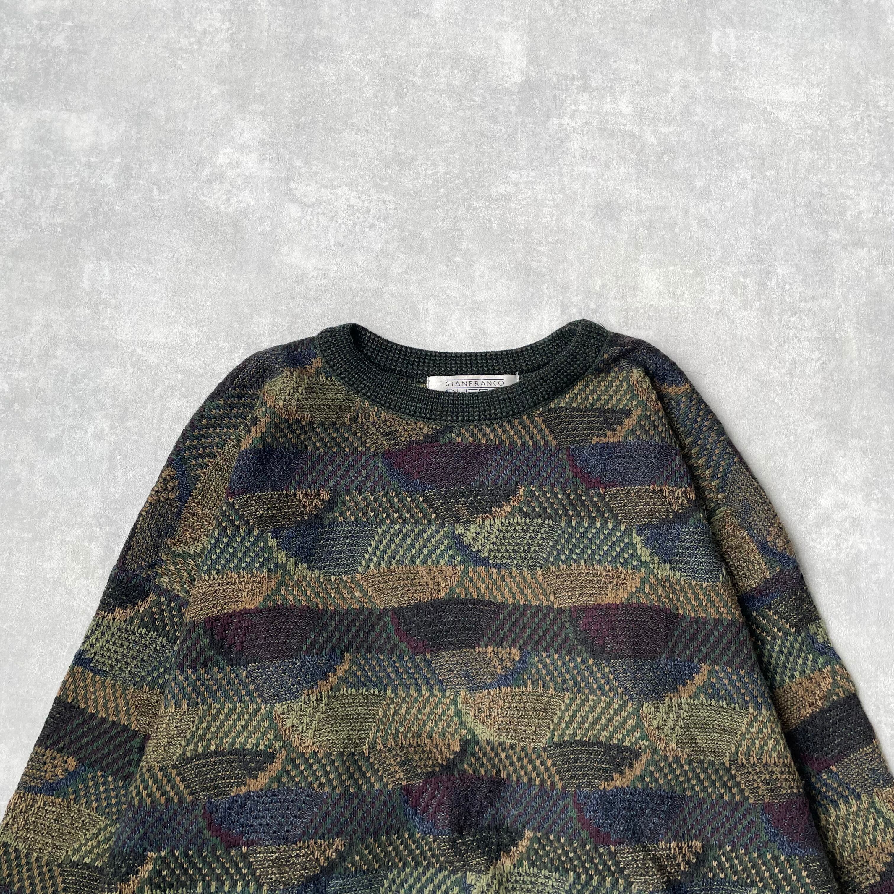 【GIANFRANCO RUFFINI】 デザイン3Dニット 総柄 アクリル イタリア製