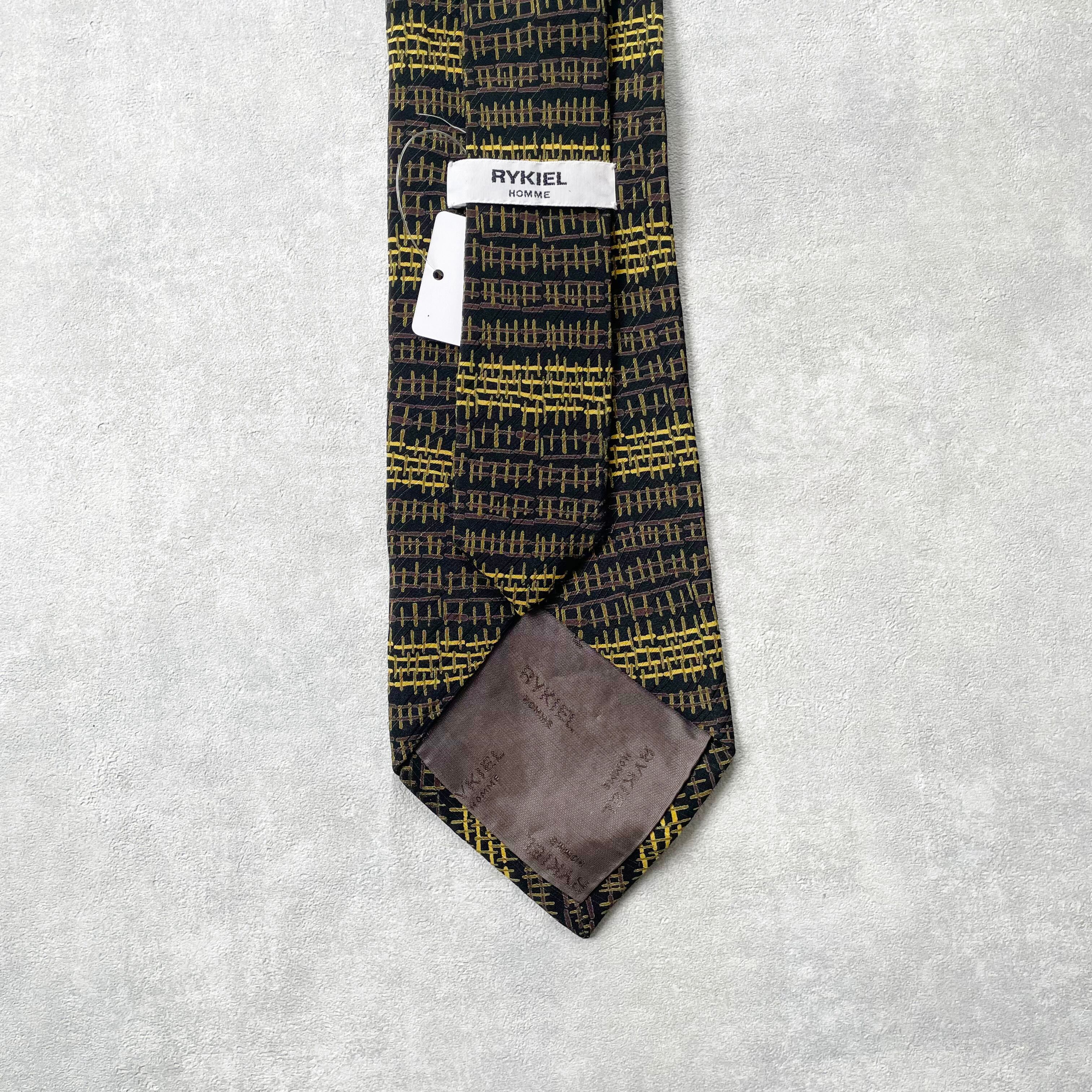 【RIKIEL HOMME】 格子柄ネクタイ ブラック イエロー シルク100%