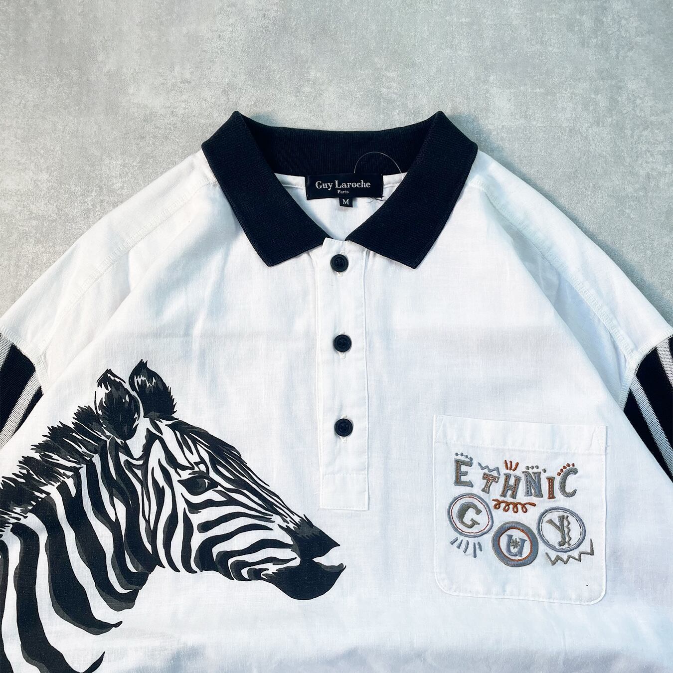 【Guy Laroche】 袖ニットリネンシャツ ゼブラ アニマル柄