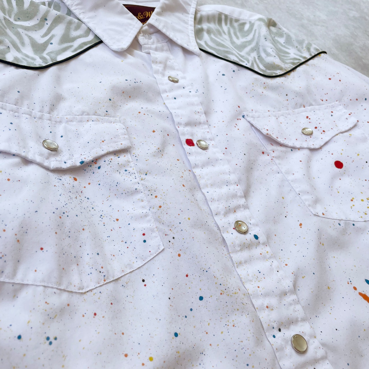 【wiz&witch】 ショート丈シャツ ペイント リメイク 短丈 再構築 デザイナーズ y2k