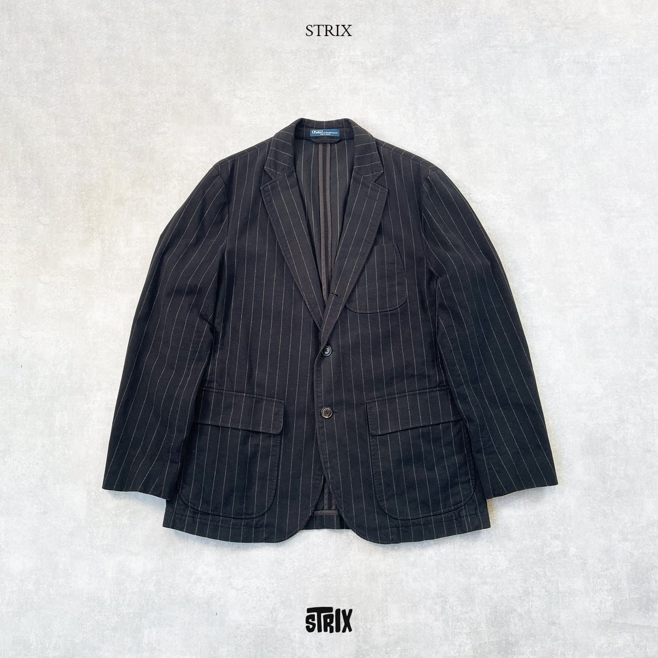 【Polo by Ralph Lauren】 ストライプテーラードジャケット ラルフローレン コットンウール サイドベンツ