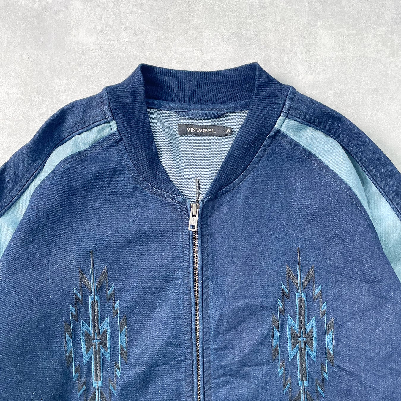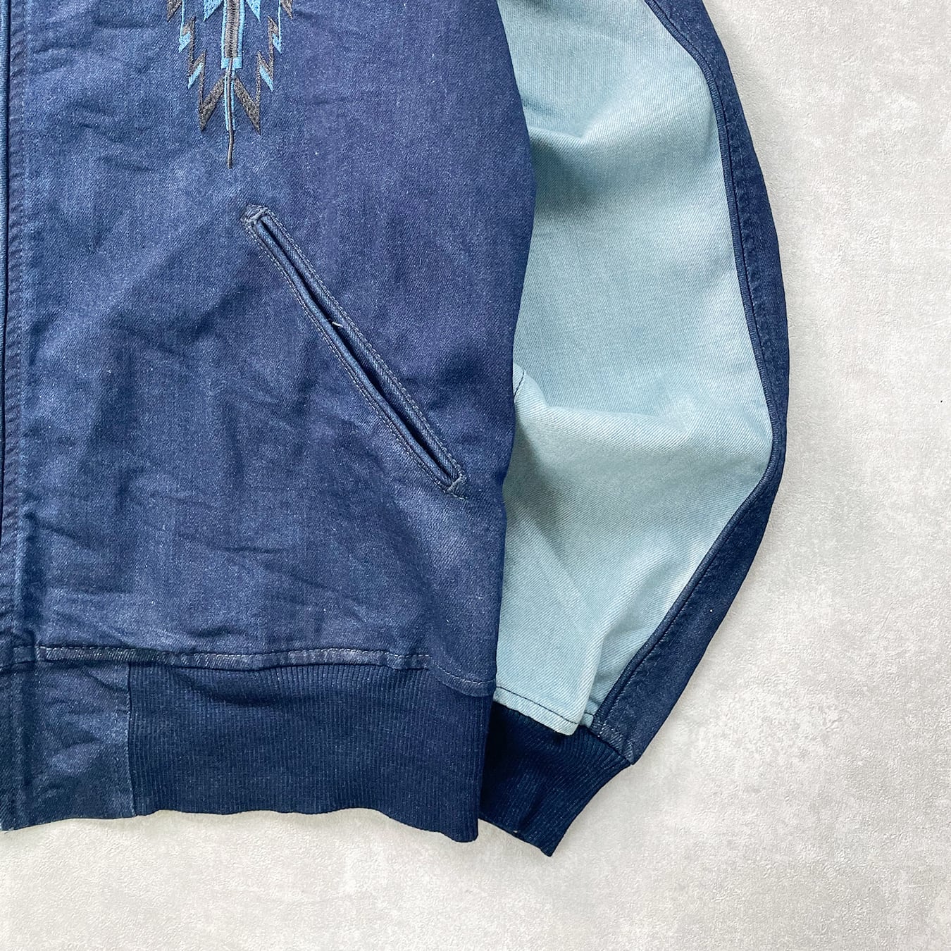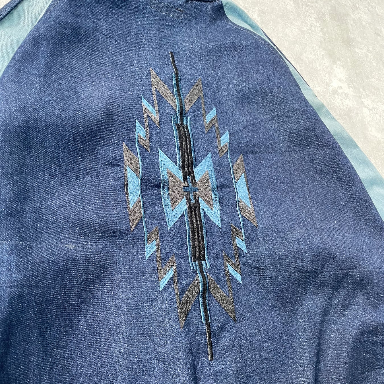 【Unknown】 ストレッチデニムスカジャン ラグラン 11oz 刺繍 ネイティブ