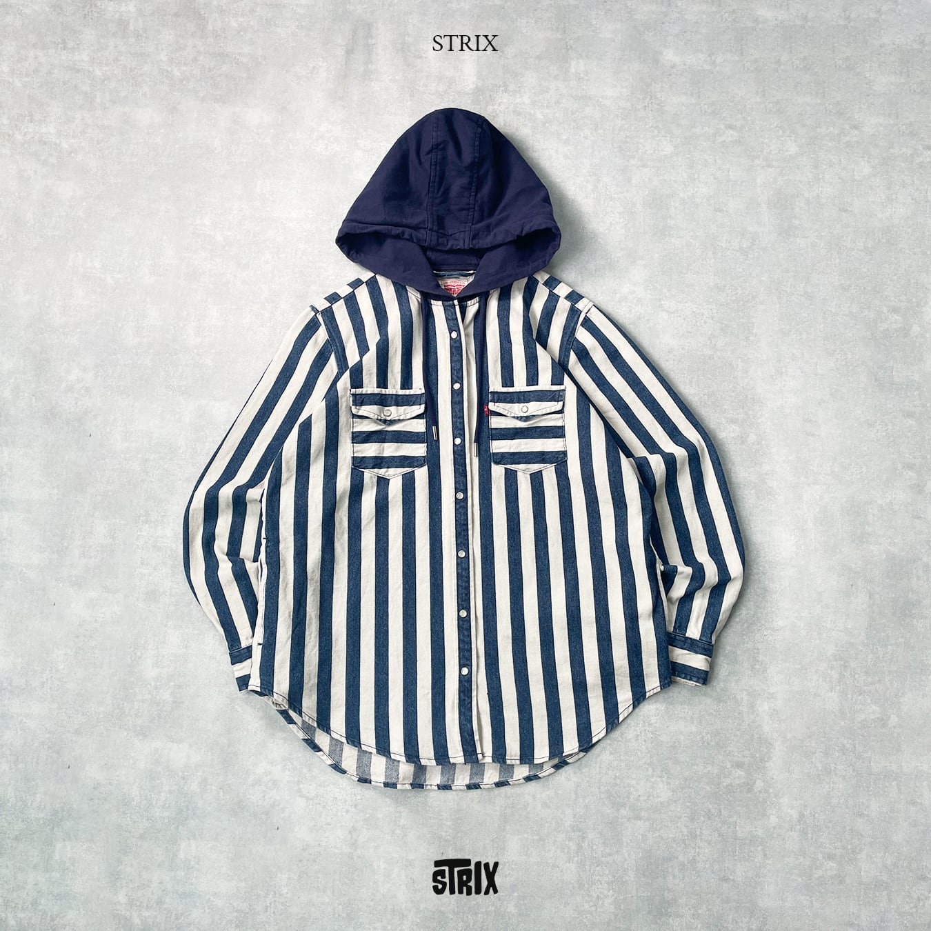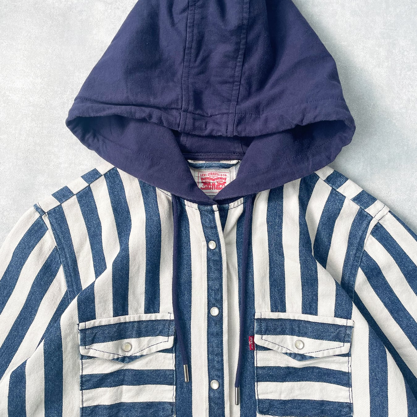 【Levi's】 リーバイス フードシャツ デニムストライプ パーカー スナップボタン