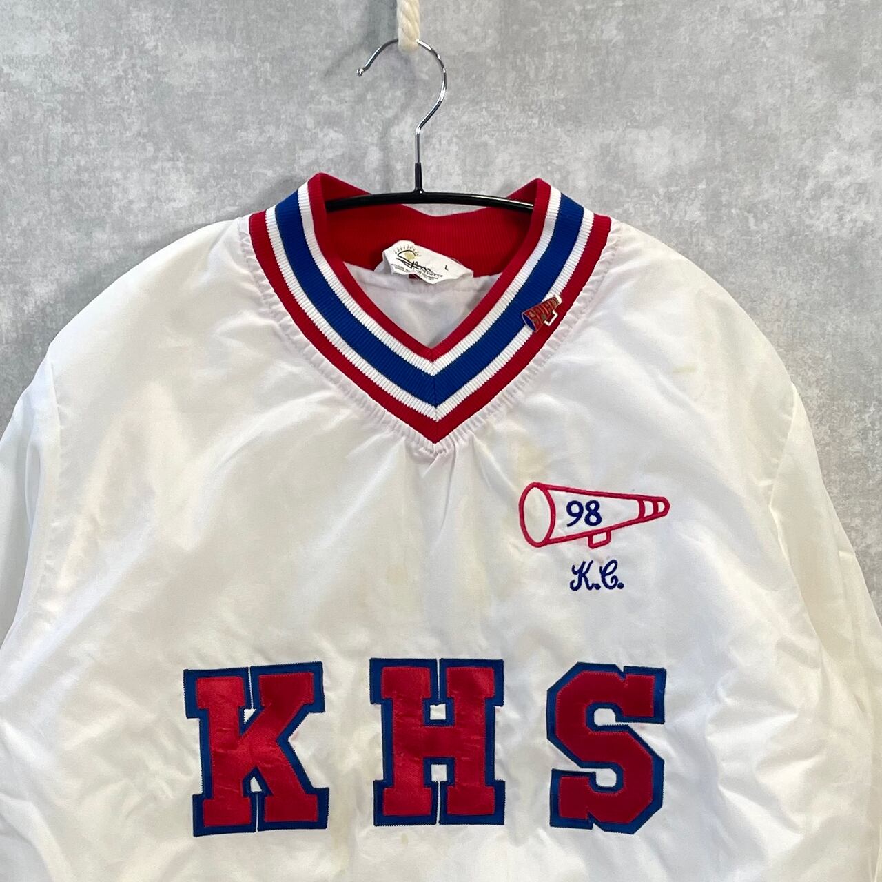 【Gem SPORTSWEAR】"70's‐80's" USA製 ナイロンVネック ピンバッジ付き ビンテージ