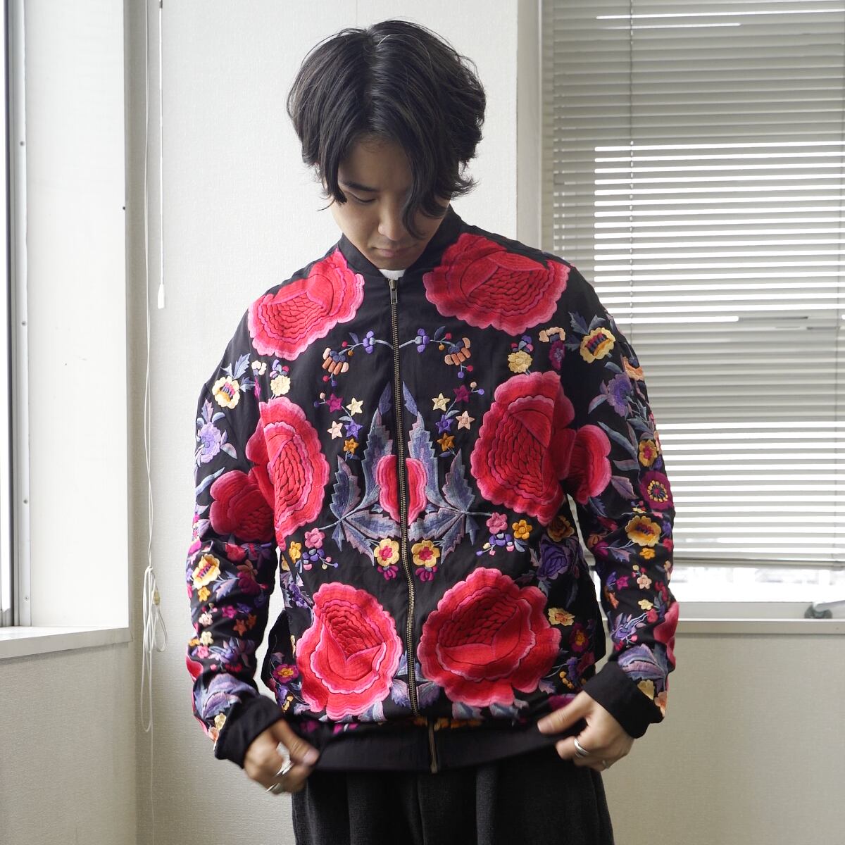 刺繍 花柄ブルゾン