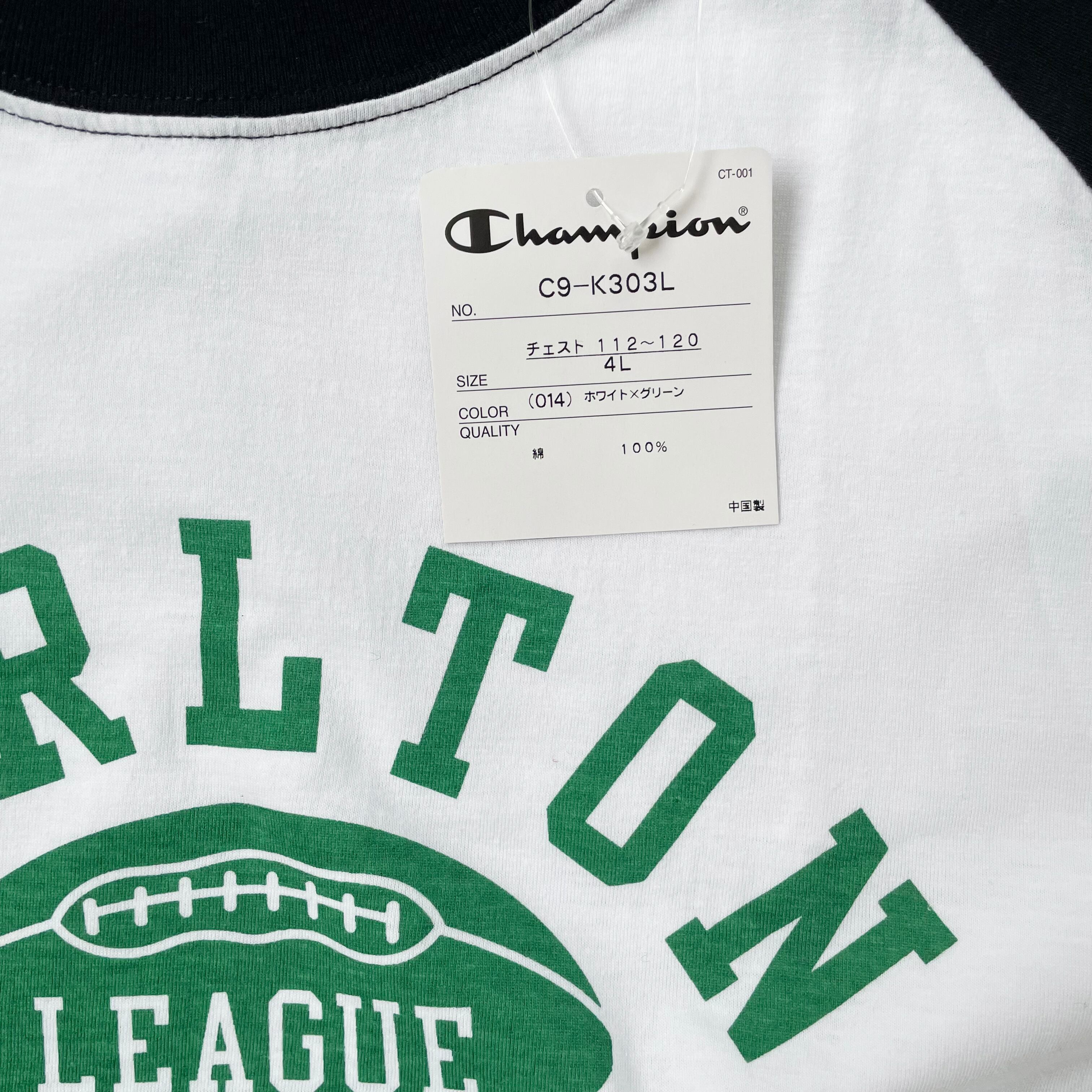 【Champion】 デッドストック チャンピオン CARLTON アメフト ラグランtシャツ