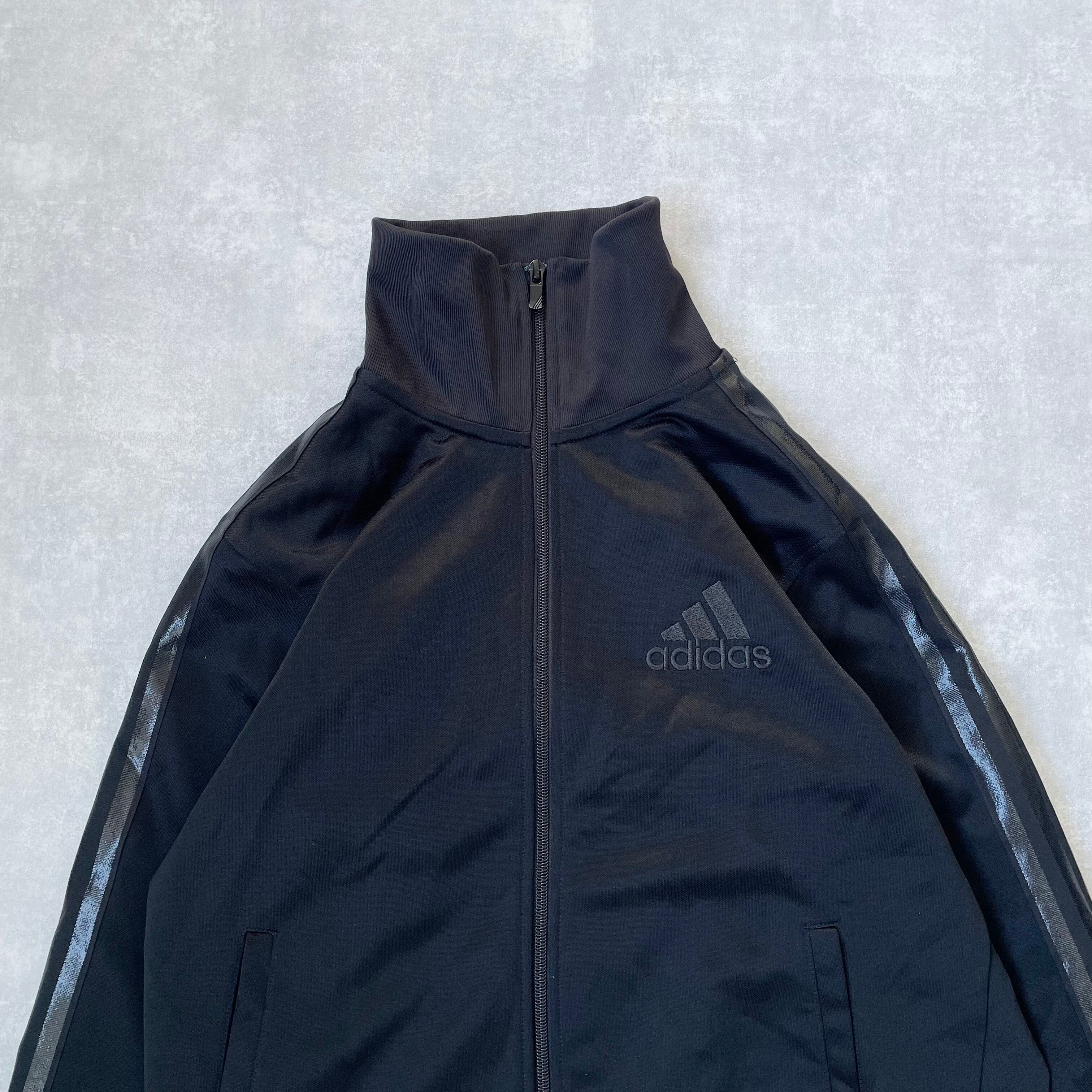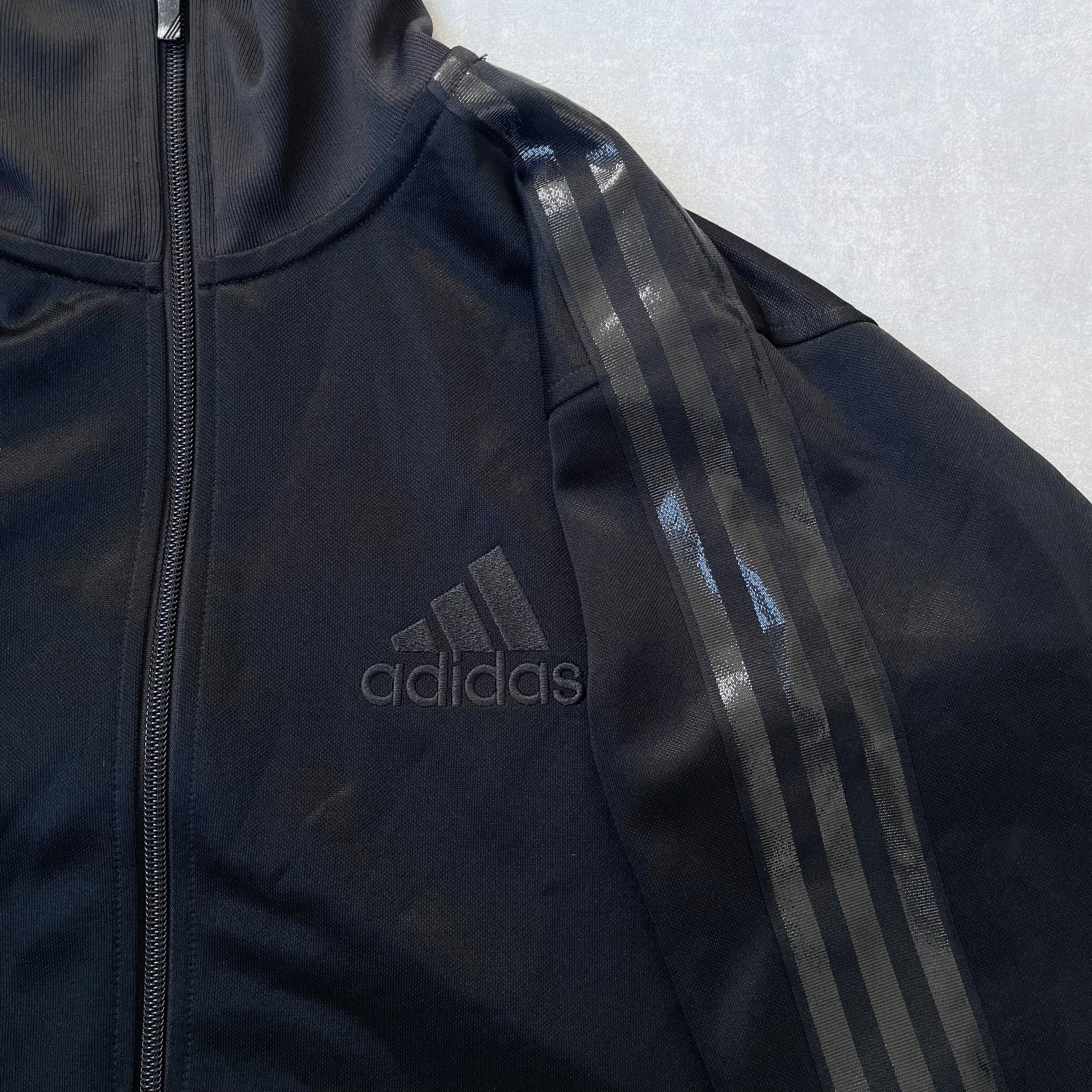 【adidas】 トラックジャケット ハイネック スリーライン オールブラック 刺繍ロゴ