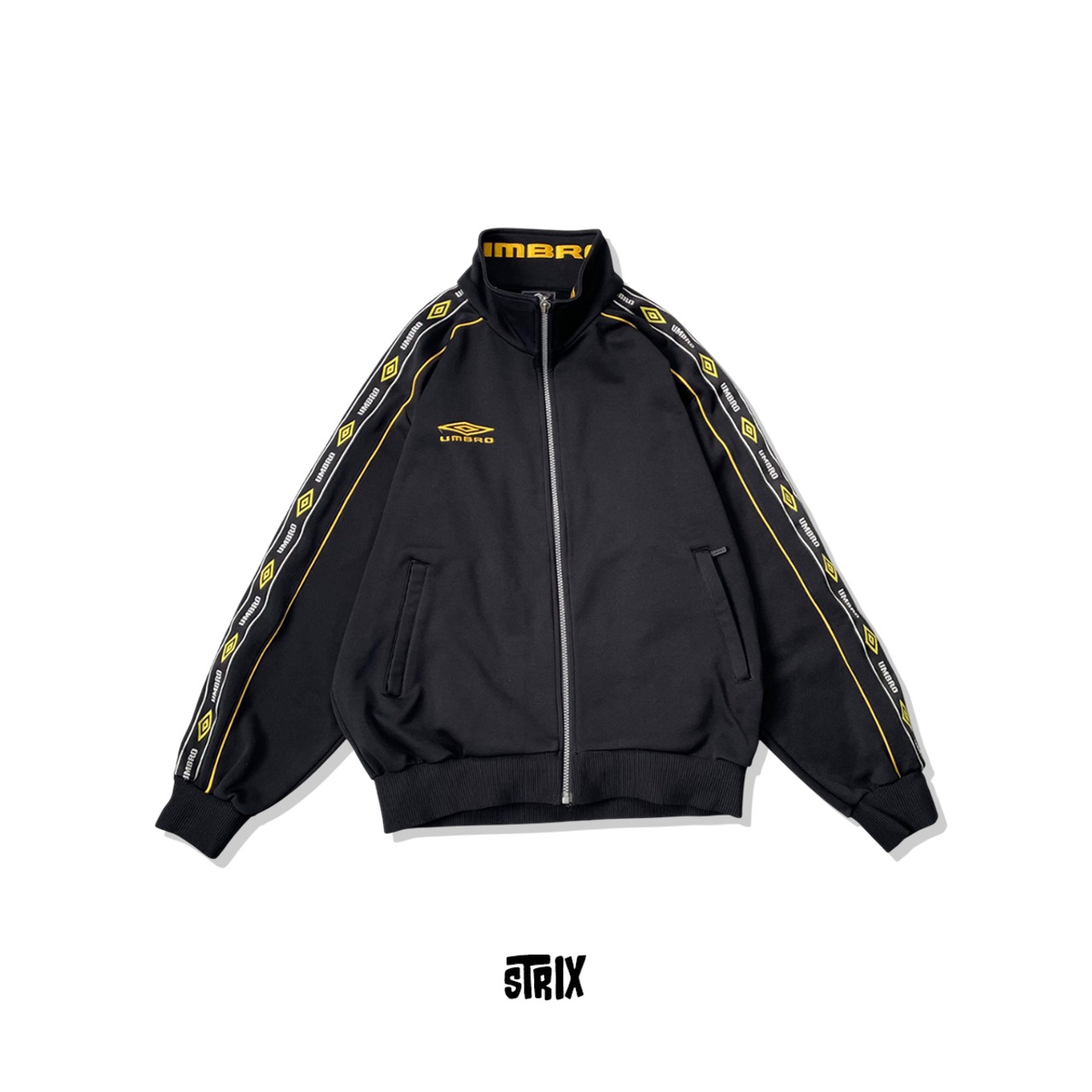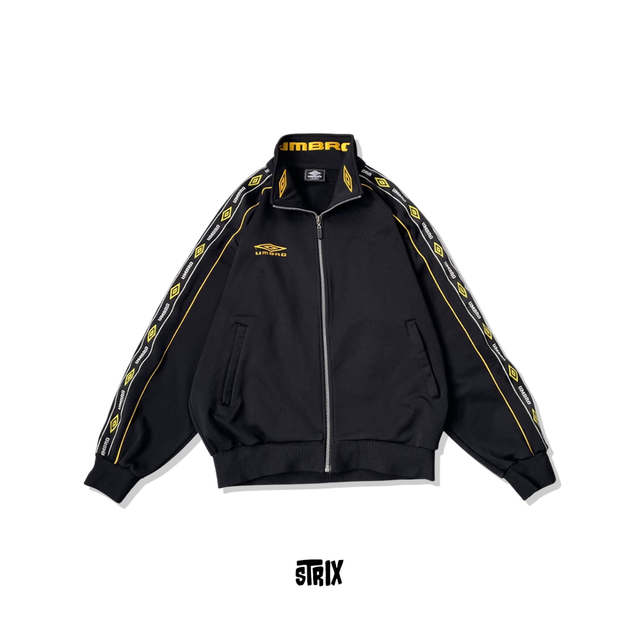 【UMBRO】希少デザイン トラックジャケット 襟刺繍 袖ライン ジャージ y2k ブラック